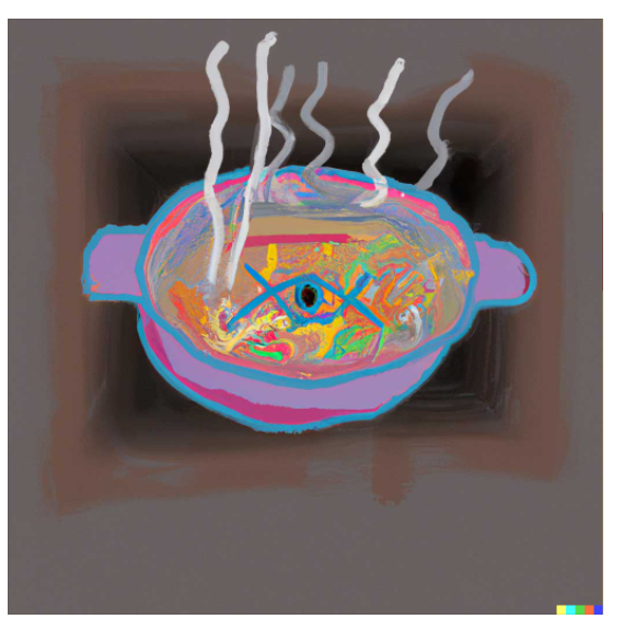 Here's the DALL-E website example for "A bowl of soup that looks like a portal to another dimension in the style of Basquiat":