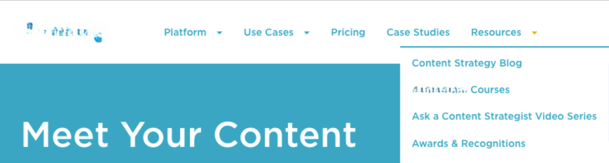 Although many SaaS brands say they are in the business of supporting content marketers and creators, dumping oodles of resources into developing individual assets that they will reuse in social media feeds and post for users to find via Google, they clearly have never creatively considered the Gestalt of their website. They’ve never considered that none of those labels mean anything, especially not the one that says “Blog.”